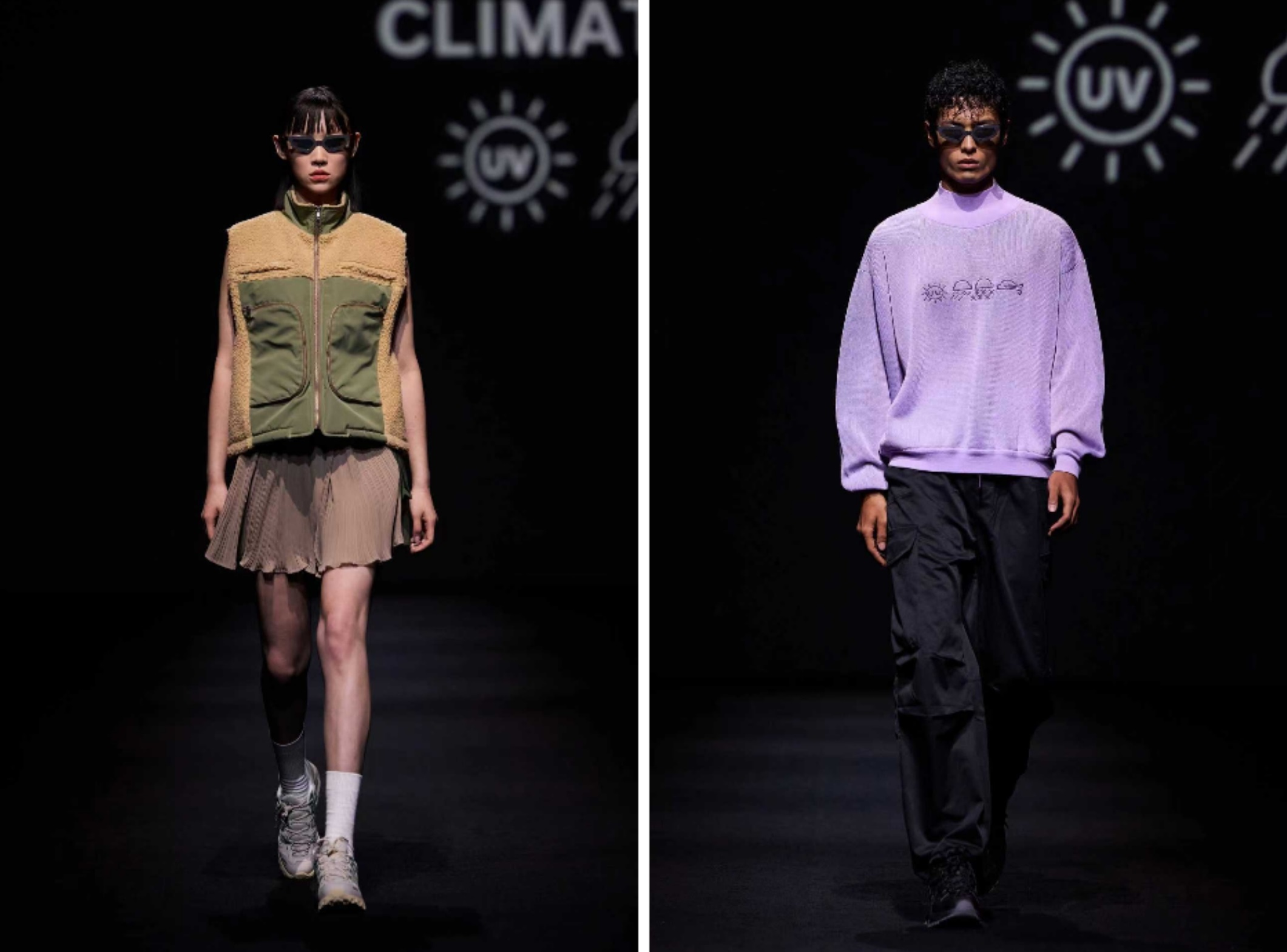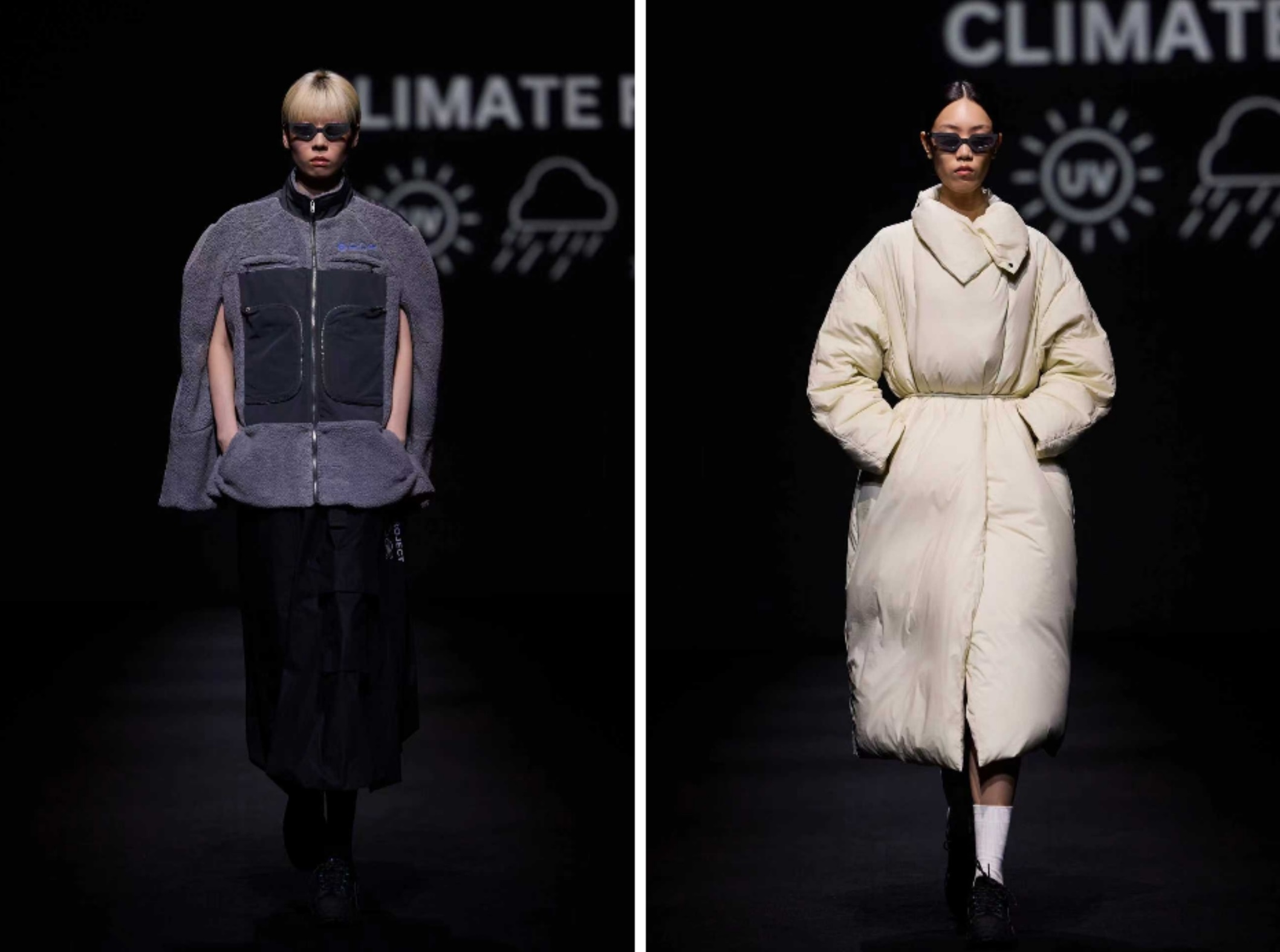 发布秀以“传统与当代的对话”为主题开场,中国国风舞艺术家张雨甜与当代街舞的表演交织,象征机能与文化、过去与未来的碰撞。通过高性能面料与先锋造型的结合,Climate Project在秀场上构建出介于都市与自然之间的空间,邀请观众重新思考服装、身份与生活方式的关系。