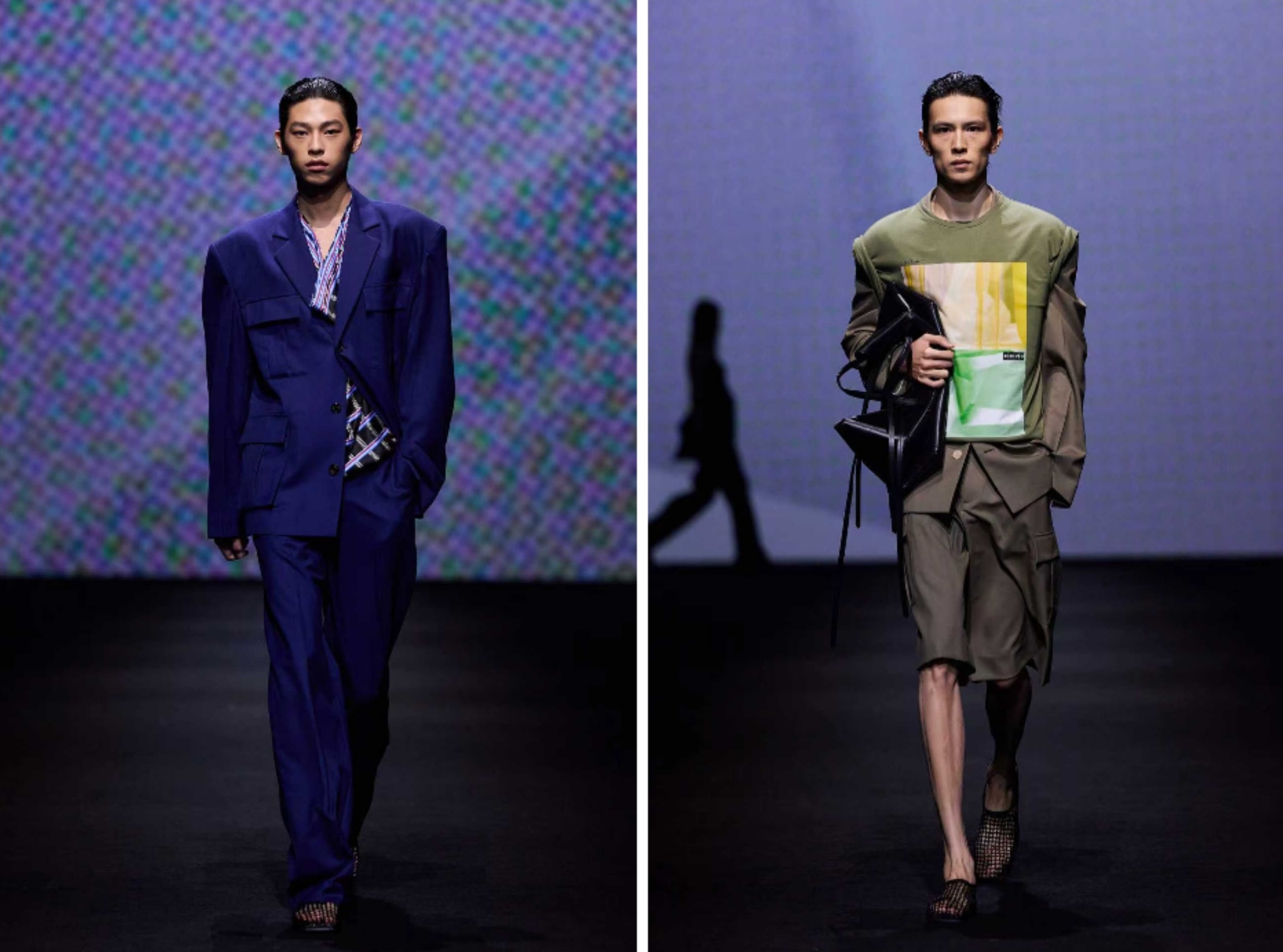 马克华菲(MARK FAIRWHALE)以“无畏拓界、深潜未来”为主题的大秀,以海洋环保为底、东方设计为脉,品牌不仅串联虎鲸精神与“积木”“电池”“新能源”三大元素,更借社交、都市、性能三大系列,将多元包容、可持续理念融入其中。
