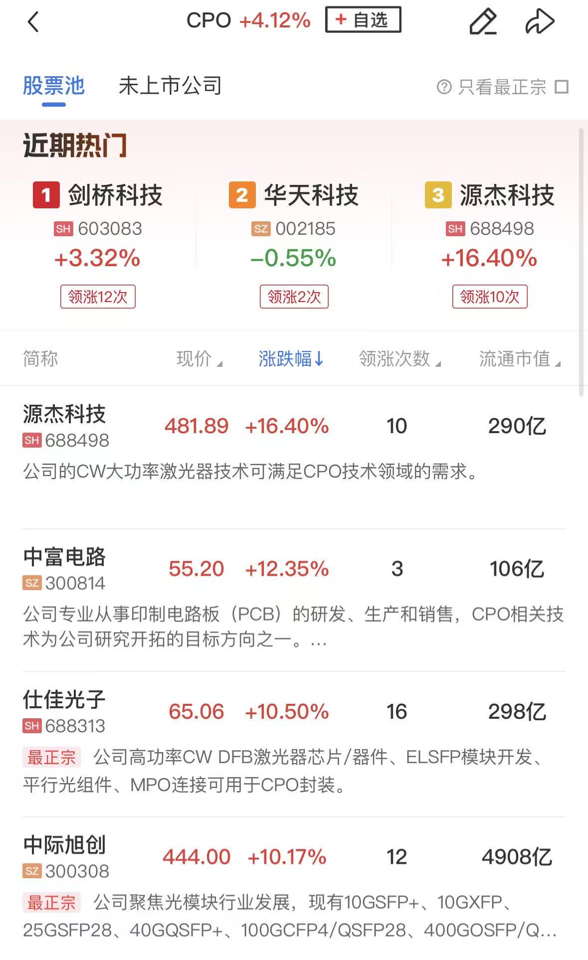 CPO概念股持续反弹,汇绿生态2连板,中际旭创、源杰科技、威尔高、仕佳光子涨超10%,新易盛、鹏鼎控股、德科立等个股涨幅居前。