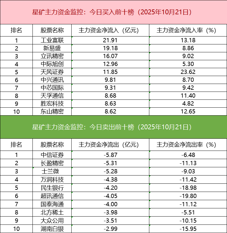 从个股主力资金监控数据来看,主力资金净流入前十的个股所属板块较为分散,工业富联净流入居首。