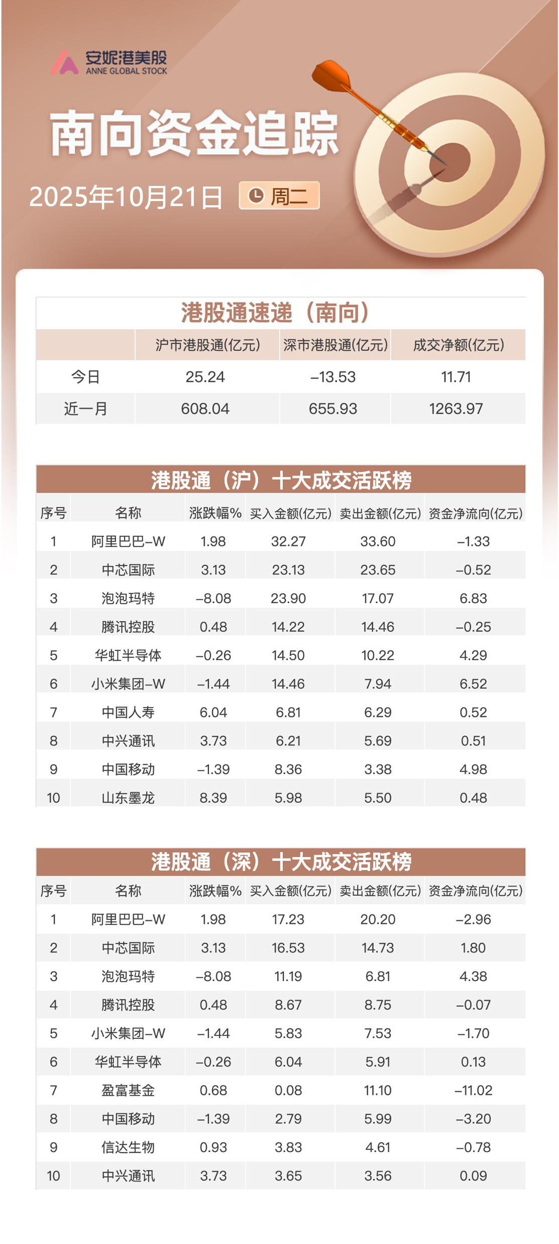 ①南向资金当日成交约1202亿港元,资金持续流入哪些个股?
