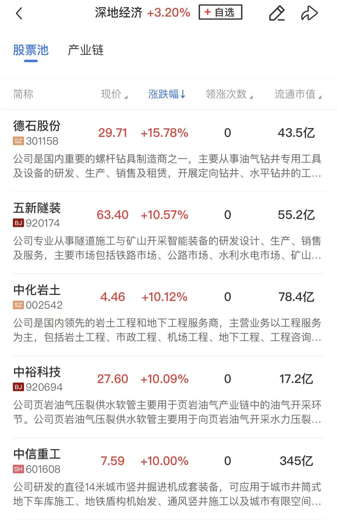 板块上,深地经济概念持续走强,中信重工、神开股份、石化机械三连板,东墨龙、石化油服、中化岩土同样涨停。