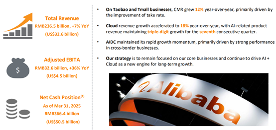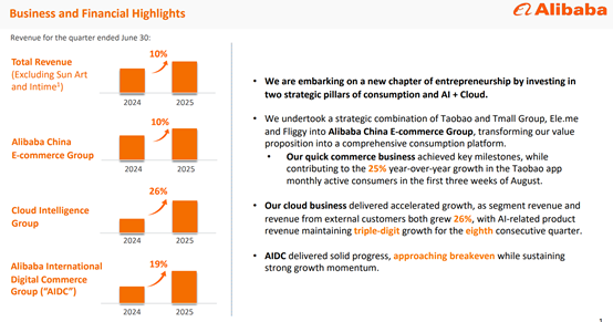 从盈利结构来看,本季度调整后 EBITDA 为457亿元,同比增长5%,利润率维持在较高水平。经营活动现金流为 495 亿元,同比上升 14%,反映出公司现金创造能力依旧强劲。集团继续推动股东回馈政策,截至季度末,累计回购约38亿美元股份。值得注意的是,阿里云在独立化调整后开始聚焦高价值客户与 AI 基础设施布局,成为未来潜在的增长动力。