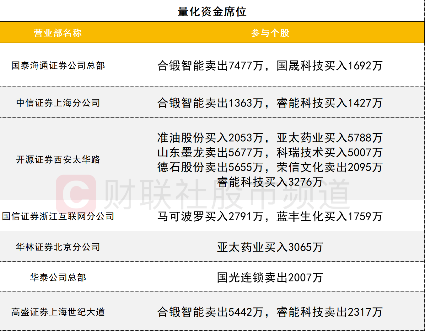 量化资金活跃度不高,合锻智能遭三家量化资金席位合计卖出1.4亿。