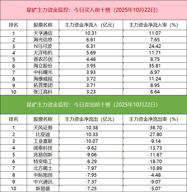 主力资金流出前十的个股所属板块较为分散,天风证券净流出居首。