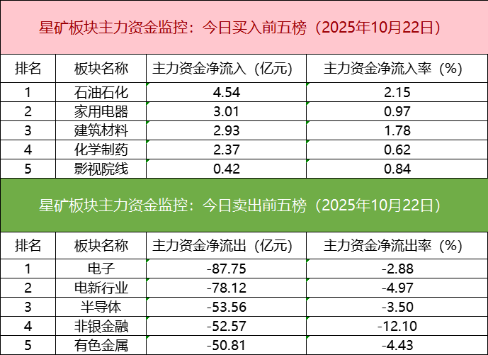 板块资金流出方面,电子板块主力资金净流出居首。