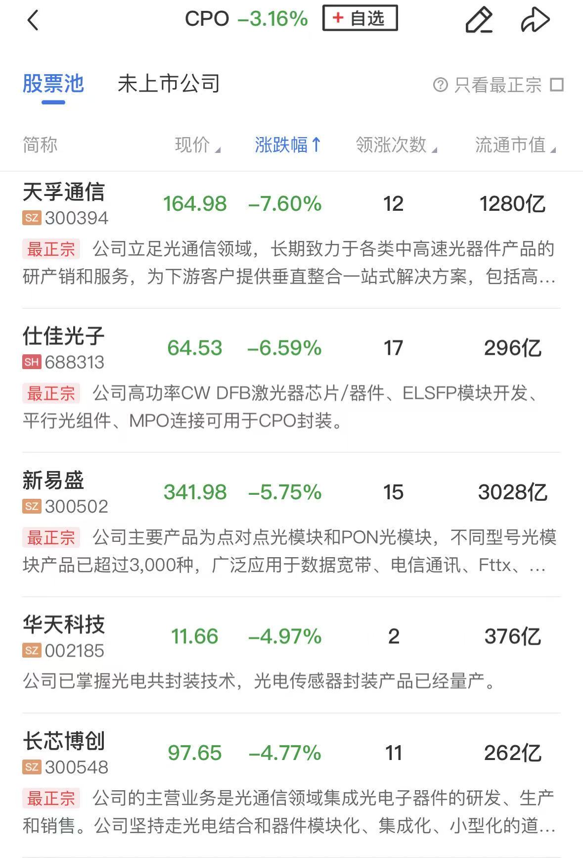 算力硬件方向再度陷入调整,威尔高、东田微、天孚通信、长飞光纤等均跌超7%,东山精密、新易盛、生益科技、剑桥科技等同样跌幅居前。