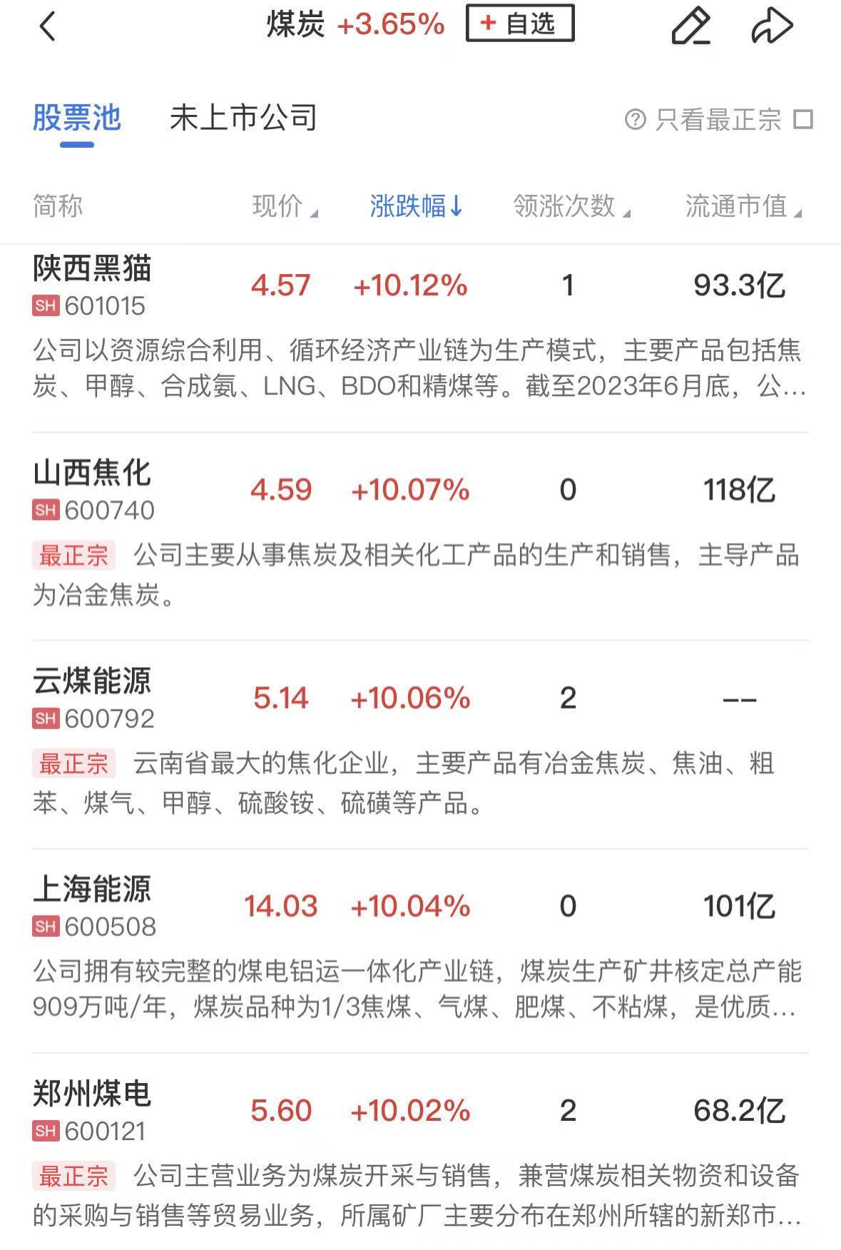 煤炭板块再度走强,大有能源晋级8连板,郑州煤电、辽宁能源、陕西黑猫、山西焦化、安泰集团涨停。