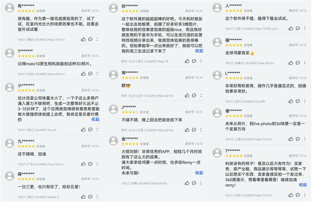 10月22日,在HarmonyOS 6发布之际,KIRI旗下3D内容应用——Remy作为鸿蒙生态独家应用,正式登陆华为应用市场,一经上架立刻引发下载热潮,热度迅速飙升至应用市场下载榜第一位,用户纷纷给出好评留言。KIRI联合创始人兼CEO王正男(Jack)在发布会上宣布,Remy将深度融合HarmonyOS 6的系统能力,为用户带来前所未有的轻量化3D影像记录与社交分享体验,真正实现“立体所见,一触即享”,广大用户的热烈支持和海量好评充分证明了这款鸿蒙独家应用的独创性和吸引力。