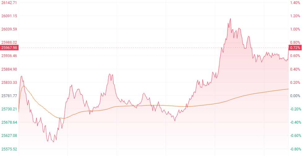 财联社10月23日讯(编辑 胡家荣)今日港股三大指数集体走强。截至收盘,恒生指数涨0.72%,报25967.98点;科技指数涨0.48%,报5951.45点;国企指数涨0.83%,报9300.74点。