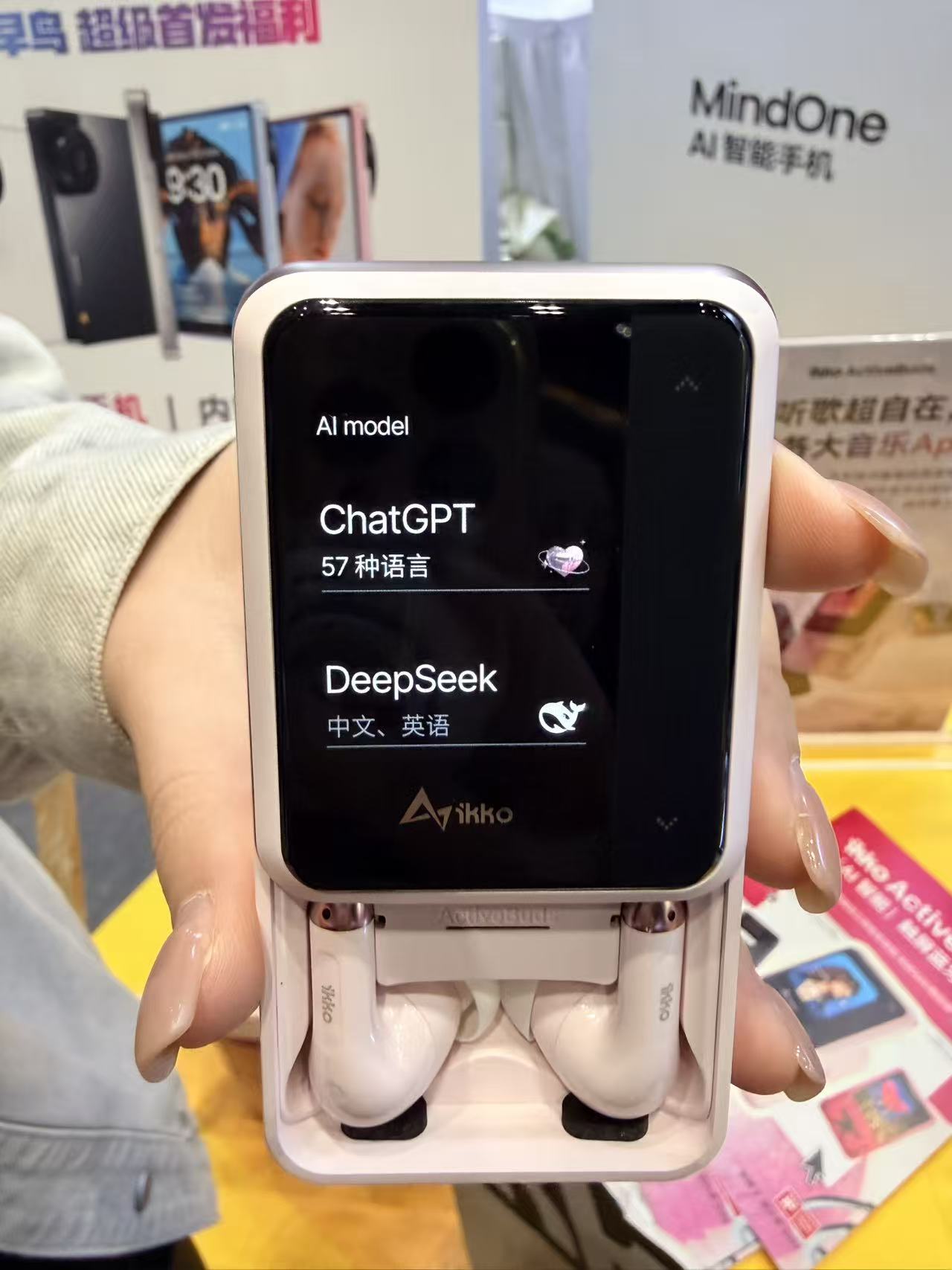 另外还有iKKo的AI耳机,售价1899元,内置ChatGPT模型和DeepSeek模型,可实现同声传译、录音、撰写会议纪要等功能。该产品现在小红书上售卖,已经是一款数码爆品。