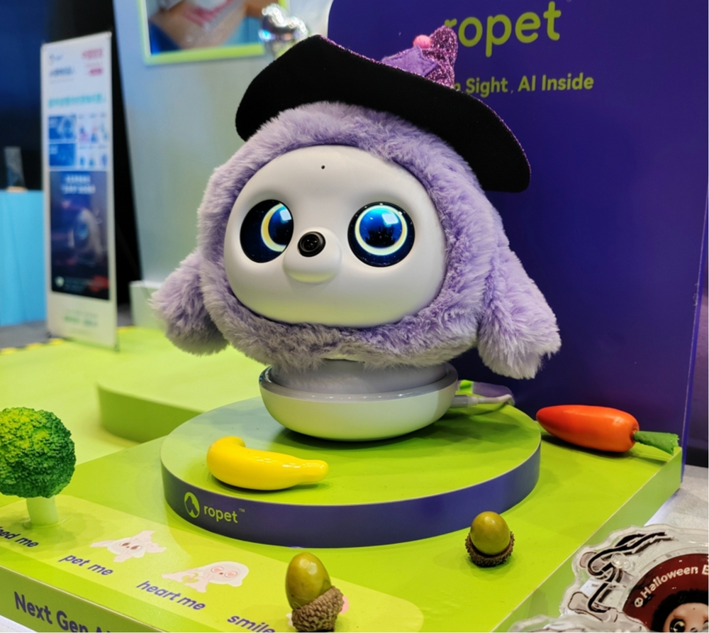 在Ropet展台前,萌友智能公司带来RopetAI宠物机器人的国内首秀。这是一款颜值与情绪价值拉满的AI机器人,萌萌的外形吸引了不少观众驻足。