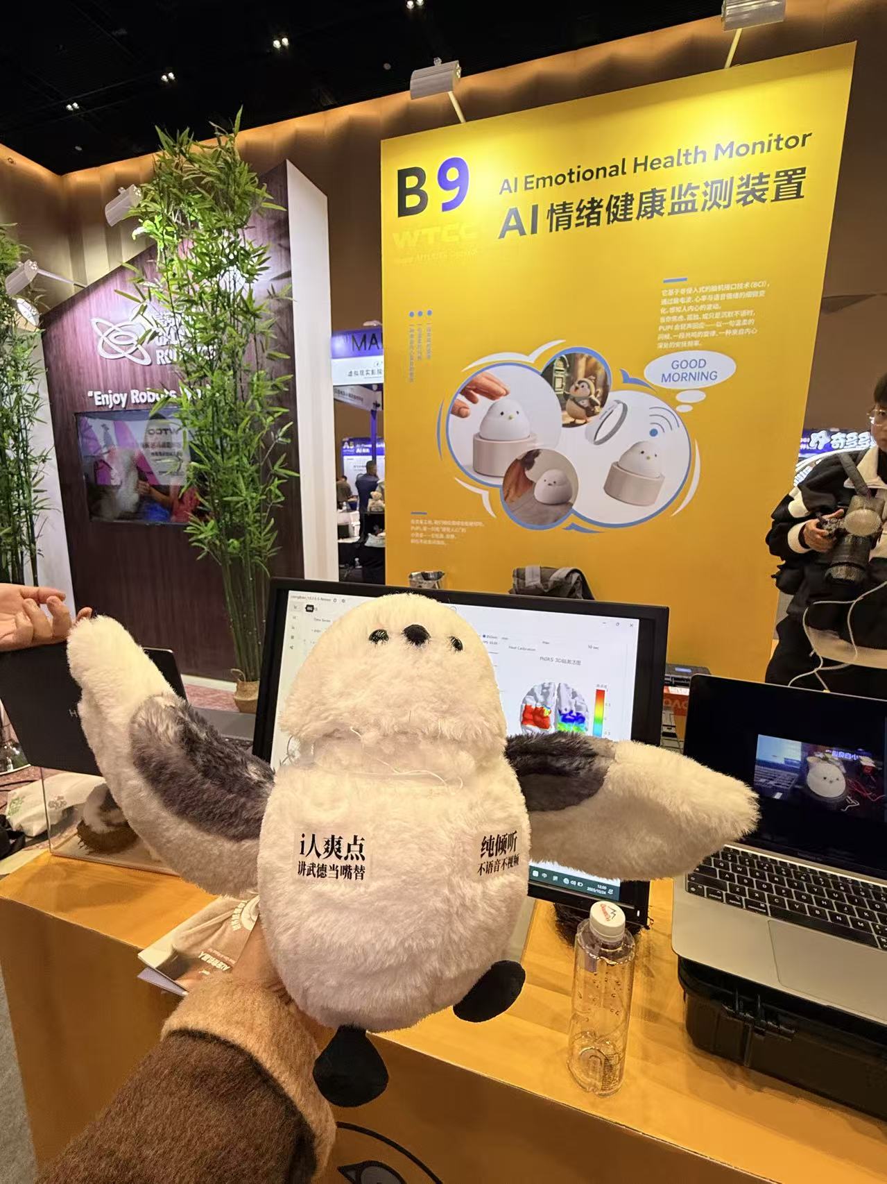 另一家初创企业灵雀工坊展示了AI情感陪伴智能宠物“山雀pupi”。