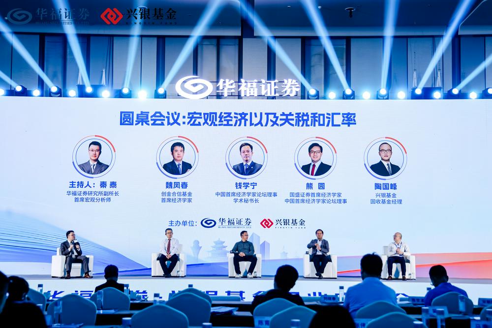 除了主题演讲外,会议还设置了圆桌论坛与专题研讨会议环节。圆桌论坛由华福证券研究所副所长、首席宏观分析师秦泰主持,邀请中国首席经济学家论坛理事、学术秘书长钱学宁,国盛证券首席经济学家、中国首席经济学家论坛理事熊园,创金合信基金首席经济学家魏凤春,兴银基金固收基金经理陶国峰等嘉宾参与。与会嘉宾围绕国内外经济形势与市场投资策略展开交流,并重点就关税、汇率等核心议题进行深入探讨。