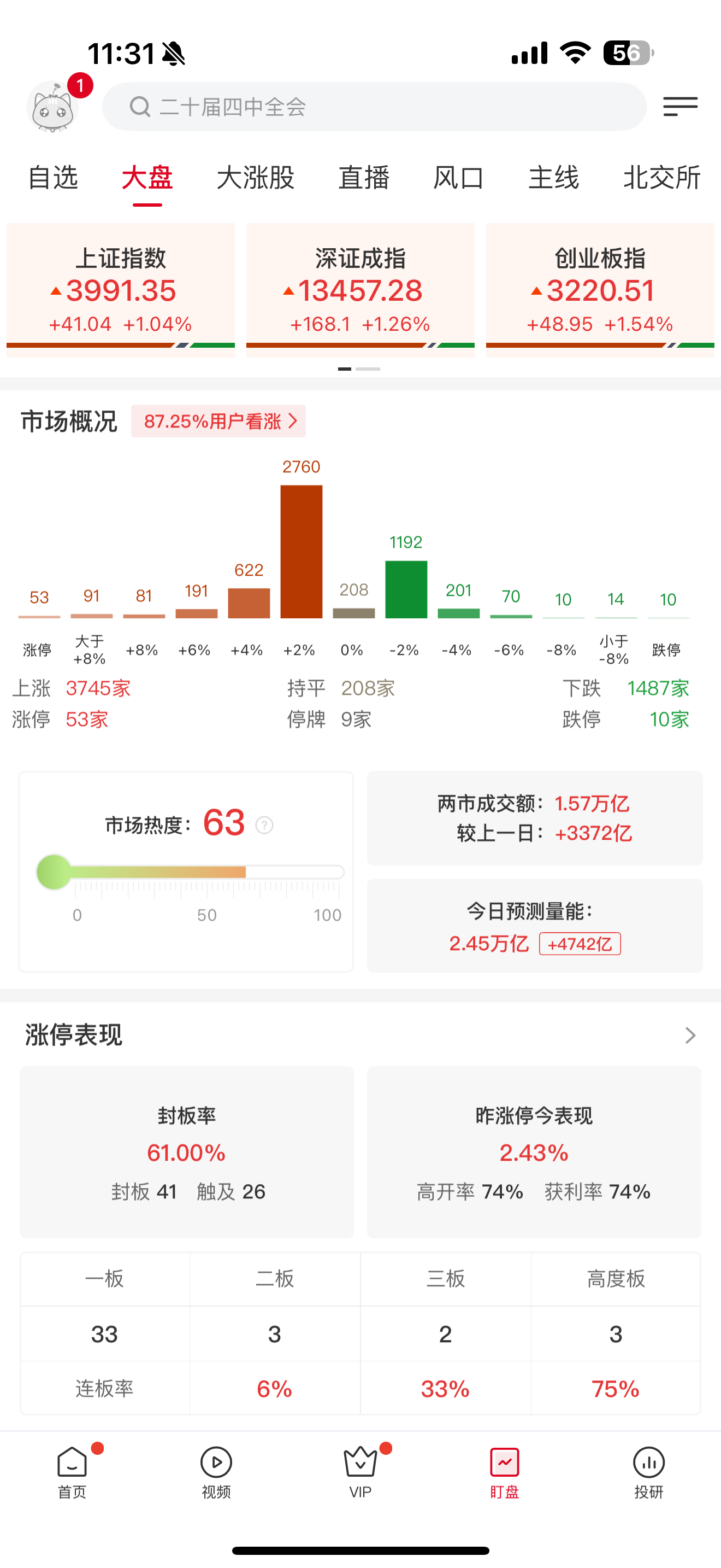 财联社10月27日电,沪指早间震荡走强,再创十年新高,逼近4000点。沪深两市半日成交额1.57万亿,半日放量超3300亿。盘面上热点快速轮动,算力硬件方向早盘表现强势,东田微触及20cm涨停,新易盛、汇绿生态、中际旭创盘中均创历史新高。可控核聚变概念股反复活跃,东方钽业3天2板创历史新高。福建本地股爆发,海峡创新20cm涨停,平潭发展7天5板。煤炭板块局部回暖,郑州煤电6天3板。下跌方面,游戏、风电板块集体调整,游族网络、海力风电大跌。板块方面,钢铁、CPO、福建等板块涨幅居前,风电、游戏等板块跌幅居前。截至收盘,沪指涨1.04%,深成指涨1.26%,创业板指涨1.54%。
