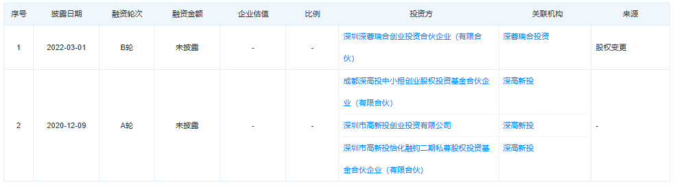 此外,该公司前10大股东还包括成都深高投中小担创业股权投资基金合伙企业(有限合伙)、深圳市高新投创业投资有限公司、深圳市高新投怡化融钧二期私募股权投资基金合伙企业(有限合伙)、深圳深蓉瑞合创业投资合伙企业(有限合伙),持股比例分别为2.85%、2.51%、0.75%、0.59%。