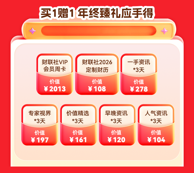 1)满额加赠:活动期间订阅VIP资讯累计消费满5000元,加赠财联社2026定制财历,助你精准制定投研计划。