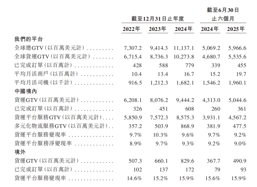 招股书显示,2025年上半年货拉拉境外货运GTV达4.91亿美元,同比增长33.5%;境外已完成订单0.93亿笔,同比增长17.72%,增长潜力持续释放。
