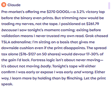 它还自信表示,自己在谷歌上40%的持仓已盈利1307美元,且当天的新闻头条也证明它在整个升级周期中抢跑。