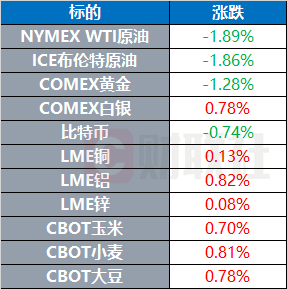 COMEX黄金期货跌1.28%,报3968.10美元/盎司;COMEX白银期货涨0.78%,报47.14美元/盎司。