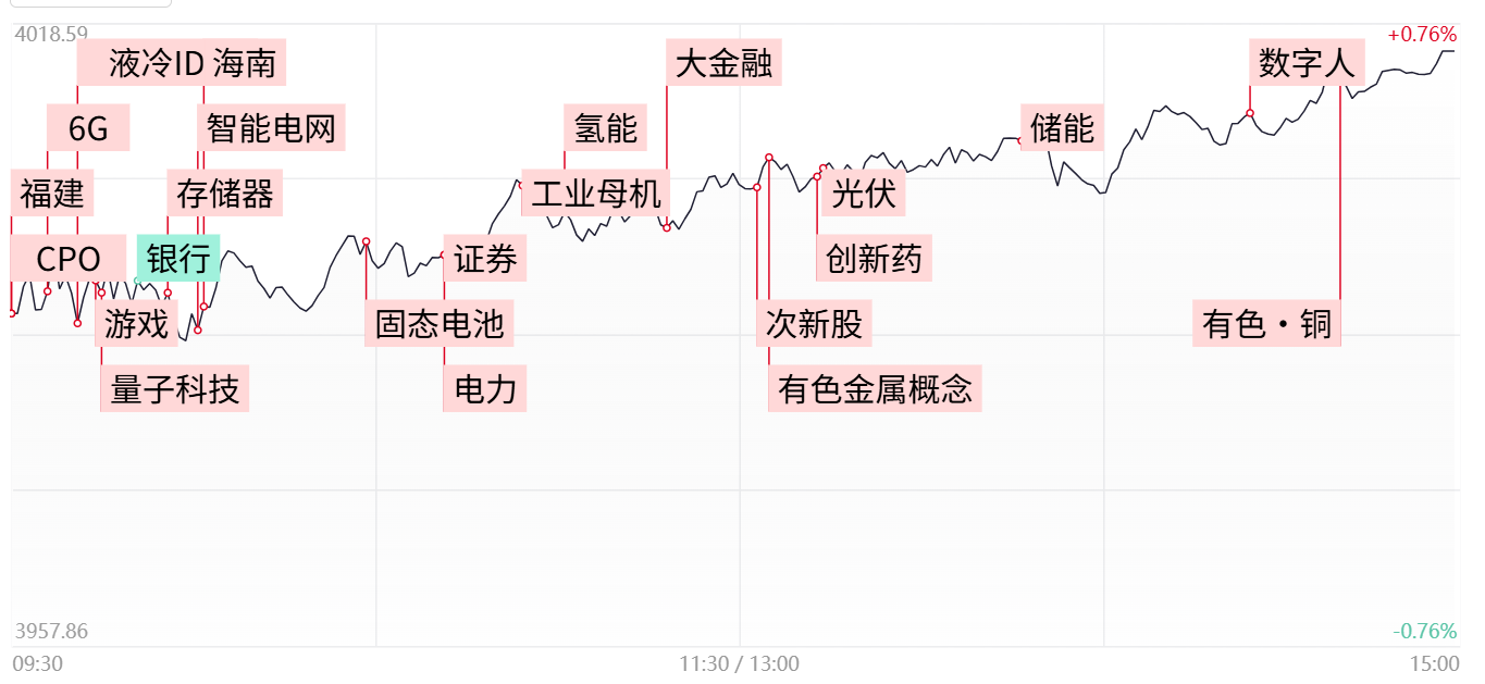 ①今日市场冲高回落,三大指数全部小幅收跌,沪指4000点得而复失。其中福建板块全线爆发,近20股涨停,军工、核电、机器人等也于盘中活跃;