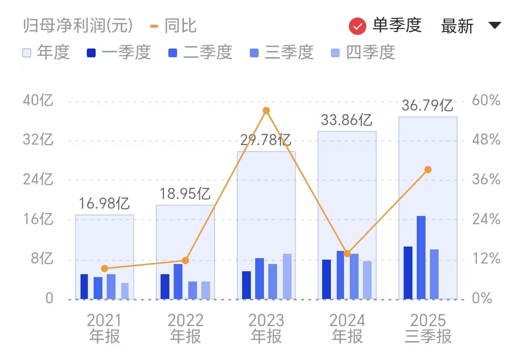 财联社10月29日电,中金黄金(600489.SH)发布2025年第三季度报告,第三季度实现营业收入189.09亿元,同比增长7.97%;归属于上市公司股东的净利润为9.84亿元,同比增长9.28%。前三季度实现营业收入539.76亿元,同比增长17.23%;归属于上市公司股东的净利润为36.79亿元,同比增长39.18%。公司抓住产品价格上涨有利时机,科学组织经营,公司业绩增加。小财注:Q2净利润16.56亿元,据此计算,Q3净利润环比下降40.59%。