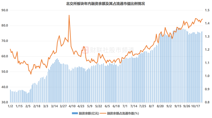 注:北交所板块年内融资余额及其占流通市值比例情况(截至10月28日数据)