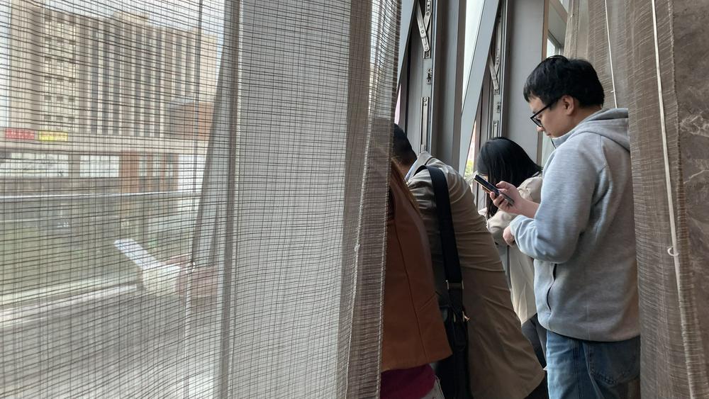于是,为了能打通电话,记者看到了这样一副画面:所有人都挤到窗边,将手机伸出窗外,只为捕捉那一点微弱的信号。