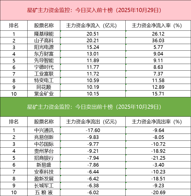 主力资金流出前十的个股所属板块较为分散,中兴通讯净流出居首。