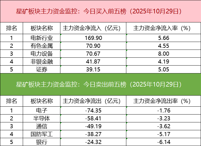 从主力板块资金监控数据来看,电新行业主力资金净流入居首。