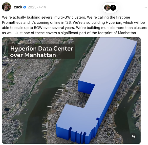 经过这一番倒腾后,Meta能够在不承担任何账面债务的情况下开发超大规模数据中心,据称Hyperion项目整体完工后的规模将达到惊人的5吉瓦。这也意味着公司能够在AI“烧钱大战”中动用更多的资金。