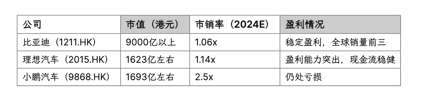 若以赛力斯2024年营收1451.76亿元人民币(约合1550亿港元)为基准,其H股静态市销率约在0.95–1.05倍之间,低于上述对手。