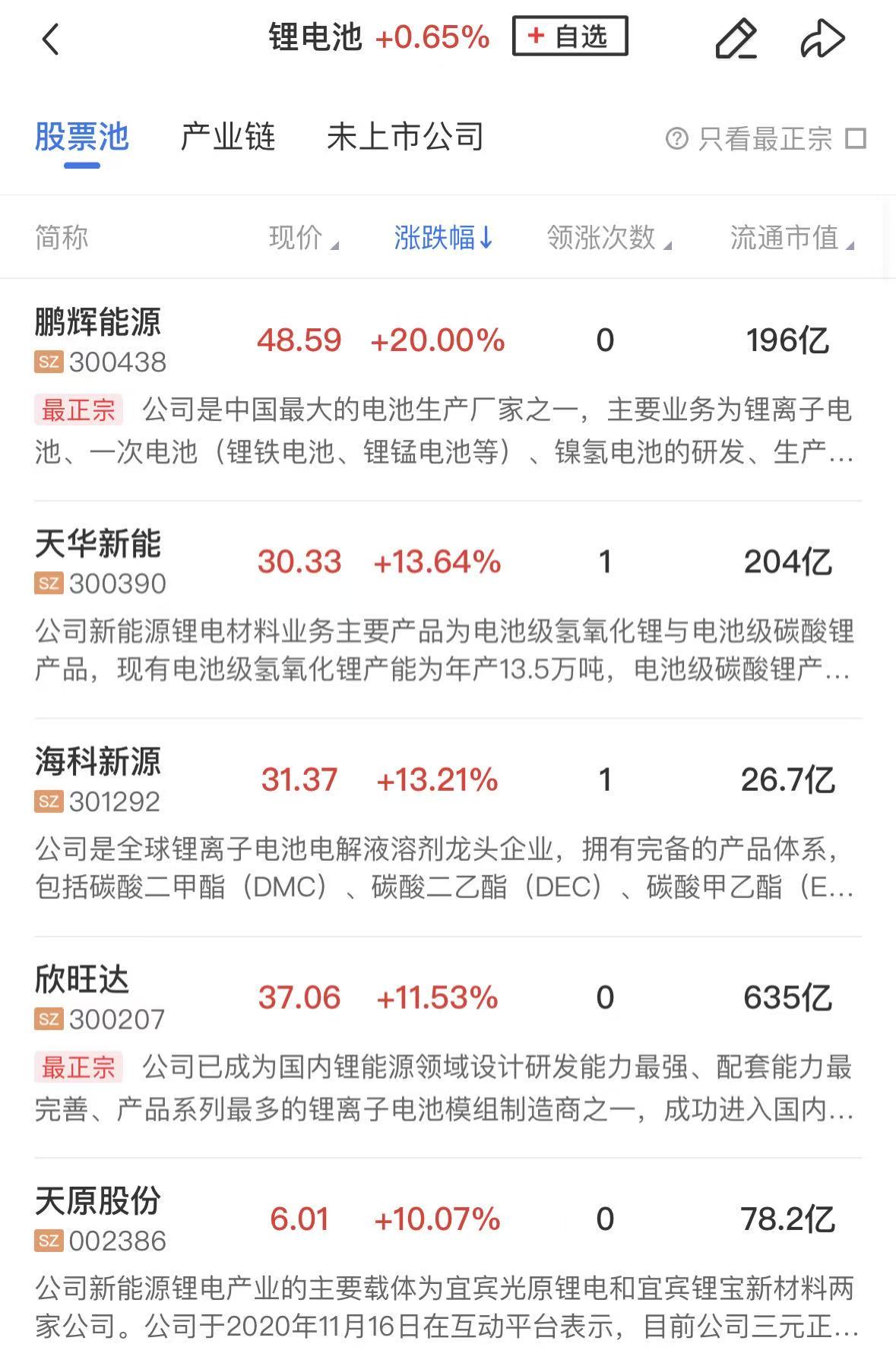 锂电池板块震荡走强,鹏辉能源、石大胜华、天际股份等涨停,海科新源、欣旺达、华盛锂电、天宏锂电涨幅居前。