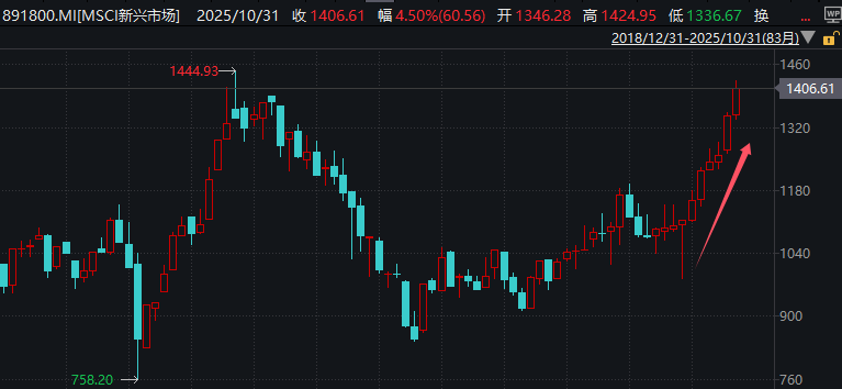 财联社10月31日讯(编辑 潇湘)随着10月行情行将落幕,MSCI新兴市场指数有望在本月实现连续第十个月上涨,这主要得益于人工智能热潮与年内美元贬值所推动的资本持续流入。