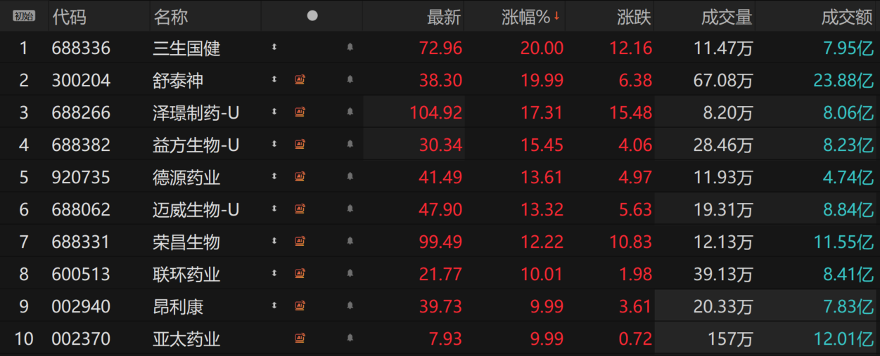 《科创板日报》10月31日讯 今日创新药板块集体走强,截至发稿,三生国健、联环药业、昂利康、亚太药业等多股涨停,泽璟制药、益方生物等亦纷纷大涨。