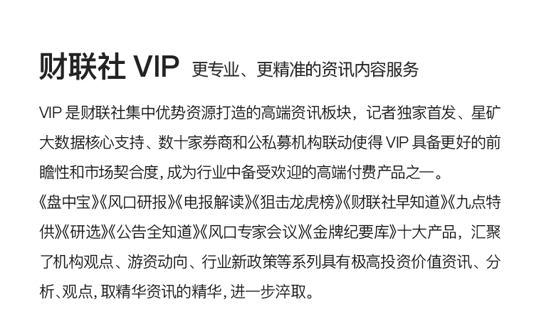 注:财联社VIP为内容资讯产品,并非投资建议。以下内容仅为资讯价值展示非对相关公司的推荐建议,非未来走势预测。投资有风险,入市需谨慎。