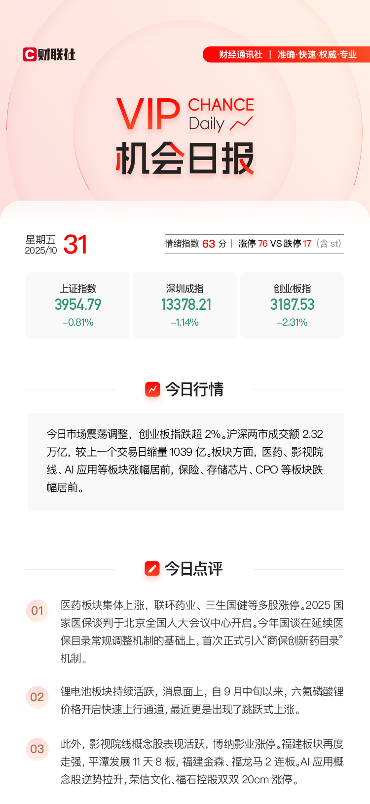 【VIP机会日报】10月行情收官 医药板块逆势走强 栏目解读行业政策 提及相关公司涨停