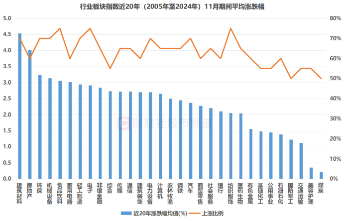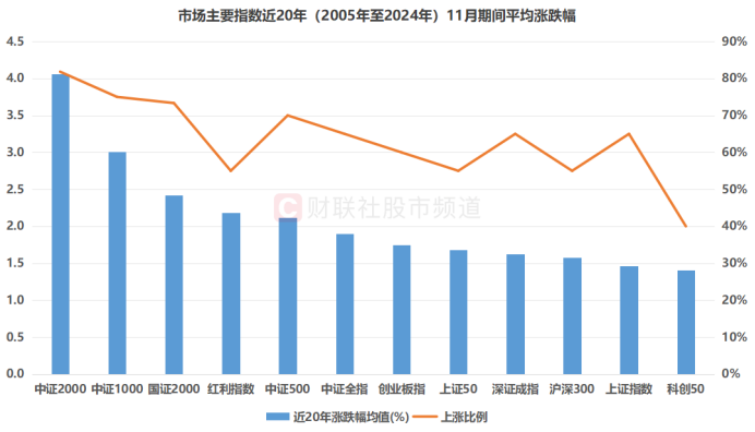 注:市场主要指数近20年(2005年至2024年)11月期间平均涨跌幅