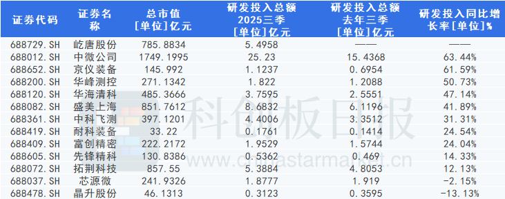 新产品的密集落地,源于企业对研发的极致投入。三季度财报显示,科创板半导体设备商普遍维持高强度研发,投入规模同比增长显著。