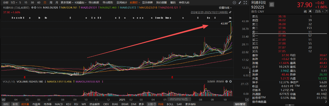 利通科技同时具备深海科技和核电概念,公司自2024年8月迄今股价累计最大涨幅为535%。公司10月29日发布机构调研纪要表示,目前正在按计划进行海洋石油软管生产线的设备安装,初步计划2025年第四季度完成产线建设和试产工作。公司在产线建设的同时积极与相关意向客户对接,为客户提供相关产品具体设计方案。