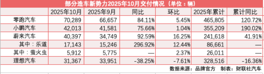 零跑、小鹏、蔚来10月销量创新高