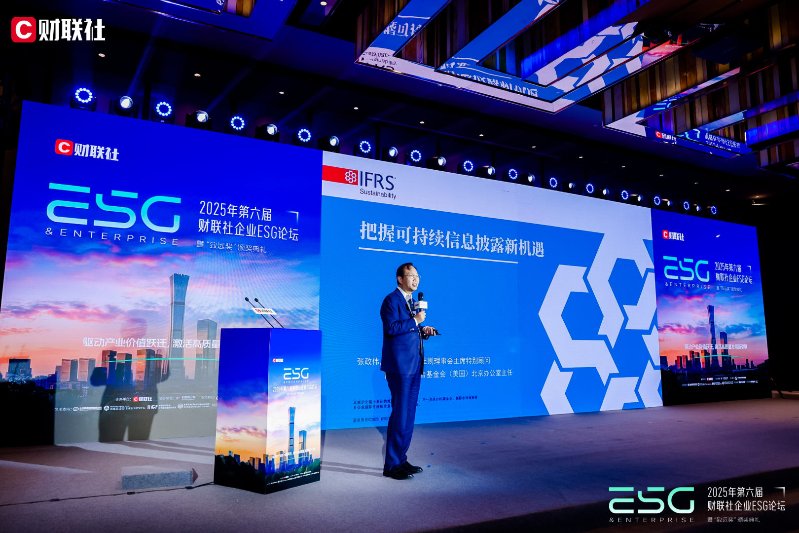 张政伟现场发表主旨演讲,深入阐释了全球可持续信息披露的新趋势,并强调企业ESG工作正面临从“成本”到“价值”的关键跃升。他指出,统一、高质量的披露准则是助力企业完成这一“惊险一跳”、构建核心竞争力的重要工具。