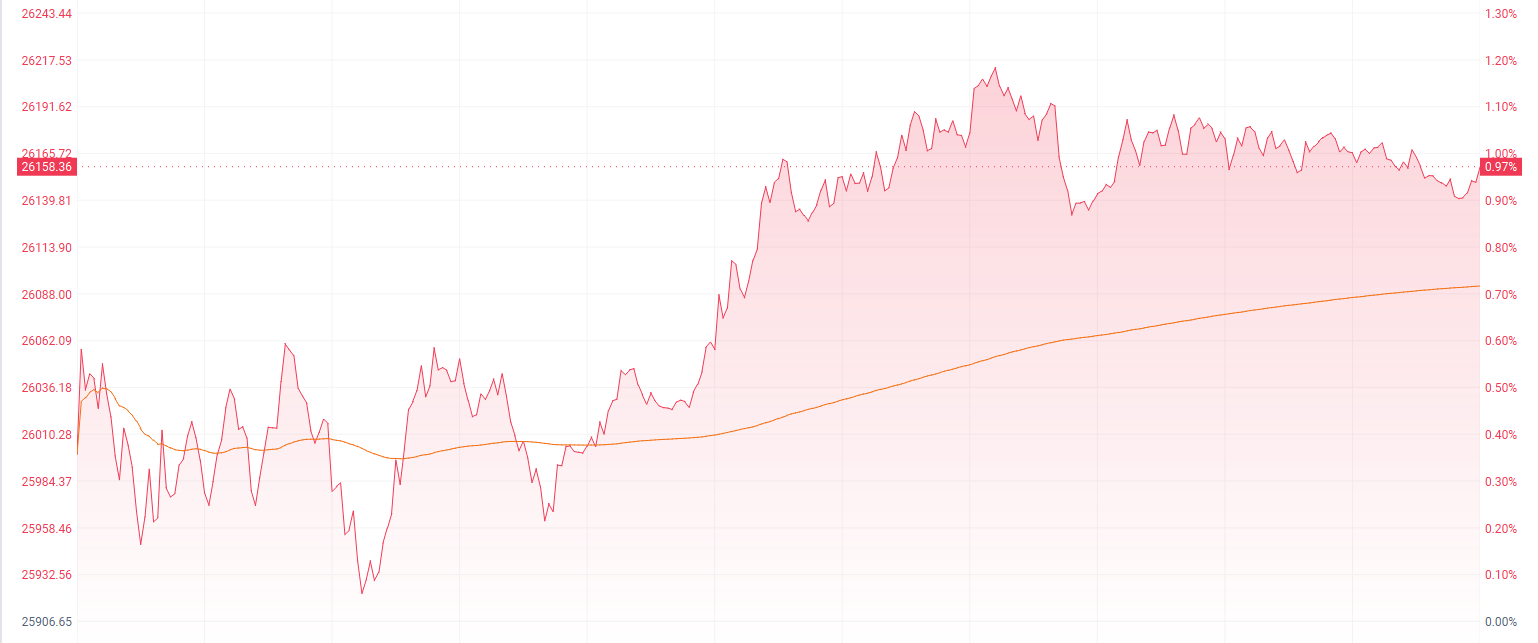 财联社11月3日讯(编辑 胡家荣)港股三大指数今日集体收涨。截至收盘,恒生指数涨0.97%,报26158.36点;科技指数涨0.24%,报5922.48点;国企指数涨0.98%,报9258.73点。