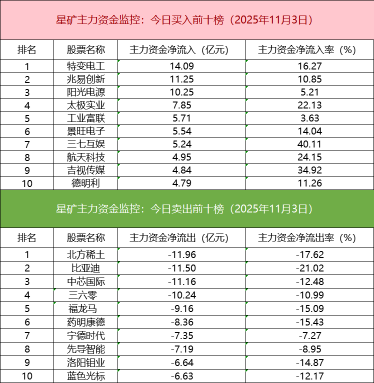 主力资金流出前十的个股所属板块较为分散,北方稀土净流出居首。