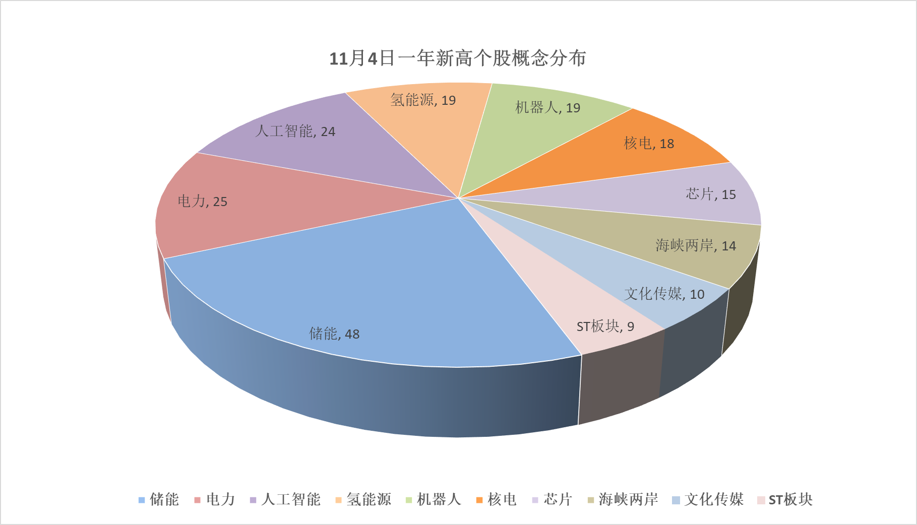 点评:创一年新高个股较上个交易日增加24家至166家。其中,前三的储能、电力、AI概念分别有48、25、24家个股创一年新高。今日全市场共50股涨停,连板股总数14只,18股封板未遂,封板率为73%(不含ST股、退市股)。