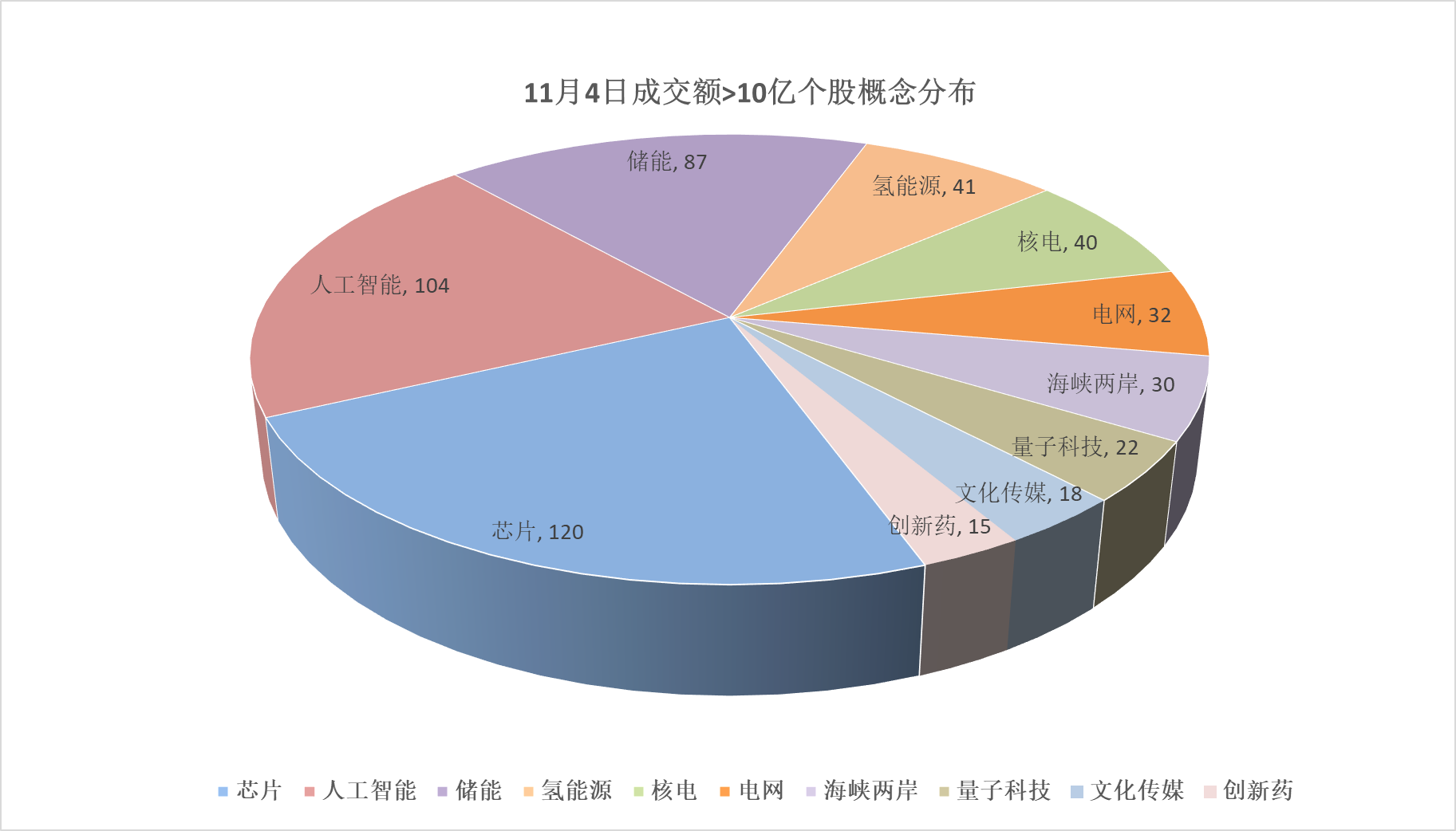 点评:市场相较于上个交易日缩量1914亿元,两市成交10亿以上个股减少61家至386家。其中,前三的芯片、AI、储能概念分别有120、104、87只个股,分别减少22、19、13只个股。市场全天缩量调整,创业板指跌近2%。盘面上,市场热点较为杂乱,全市场超3600只个股下跌。从板块来看,福建板块逆势上扬,核电板块反复活跃,煤炭板块再度走强,“马字辈”股逆势活跃。