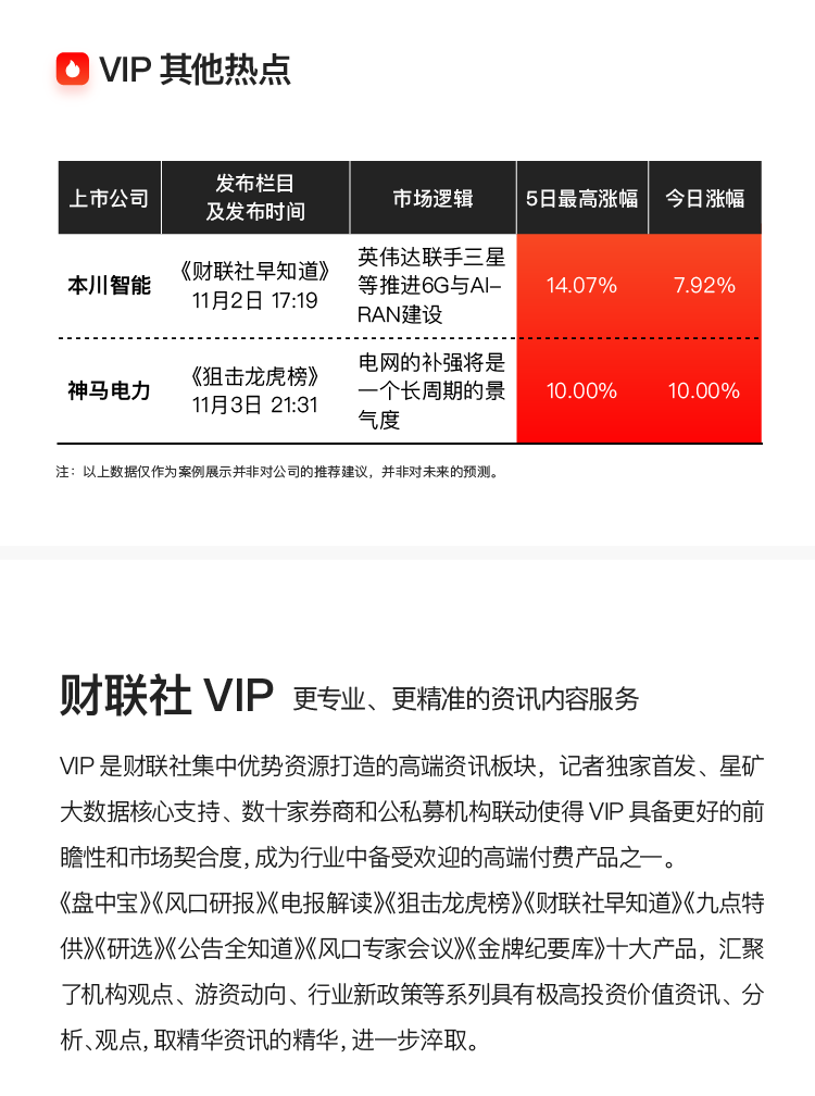 注:财联社VIP为内容资讯产品,并非投资建议。以下内容仅为资讯价值展示非对相关公司的推荐建议,非未来走势预测。投资有风险,入市需谨慎。