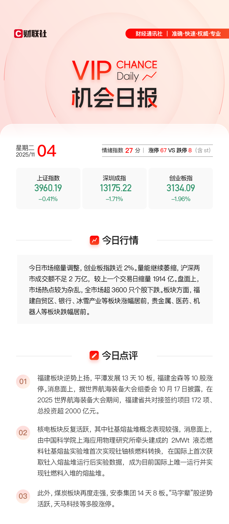 【VIP机会日报】福建板块逆势上扬 栏目解读催化事件 提及两家核心公司双双涨停