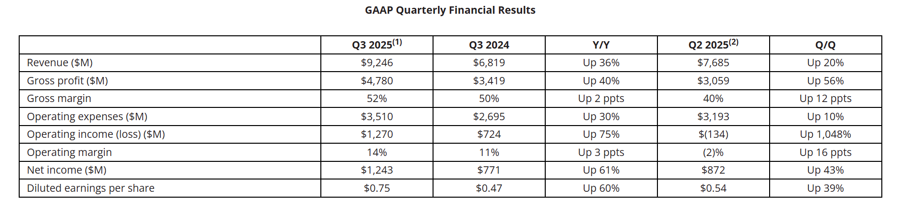 “我们本季度业绩斐然,营收和盈利均创历史新高,这反映了市场对我们高性能EPYC和Ryzen处理器以及Instinct AI加速器的广泛需求。我们第三季度创纪录的业绩以及强劲的第四季度预期,标志着我们的增长轨迹明显提升。随着计算业务不断提升,数据中心AI业务快速成长,将显著公司推动营收和盈利增长。”
