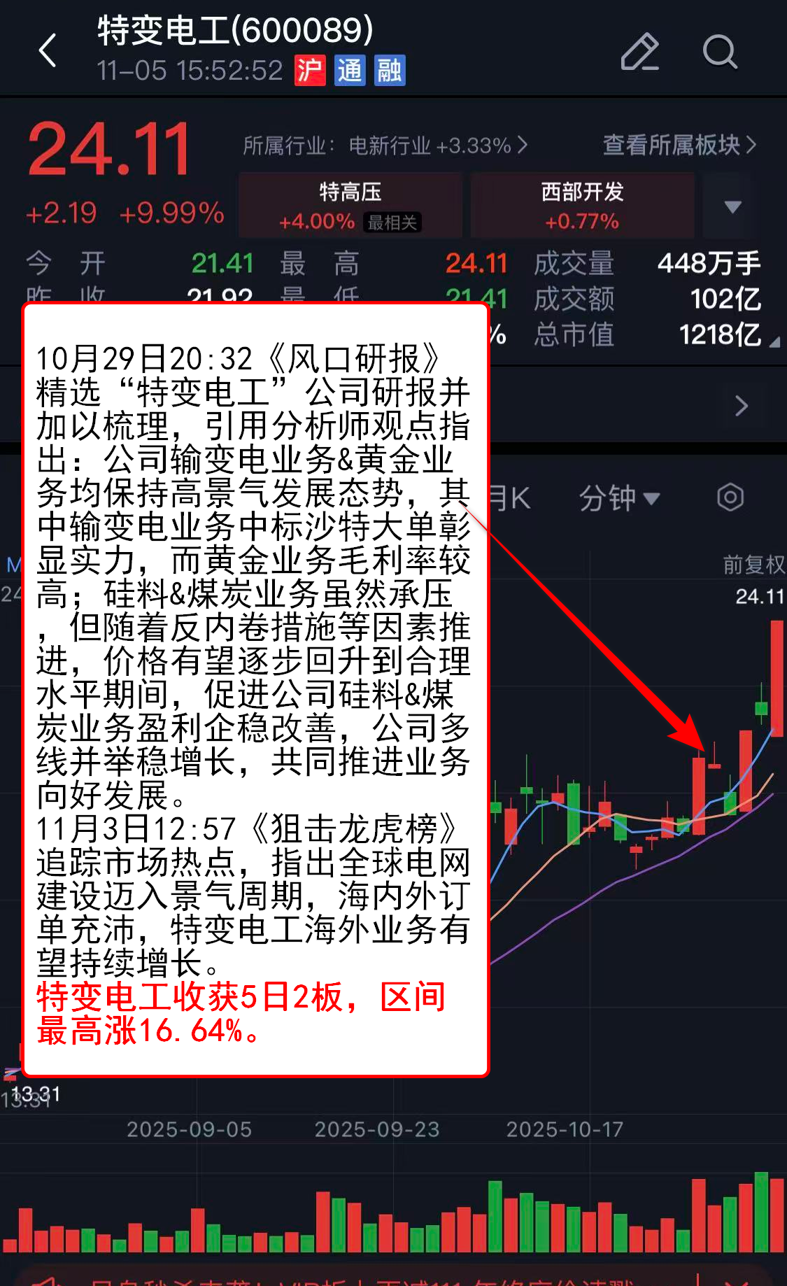11月3日12:57《狙击龙虎榜》追踪市场热点,指出全球电网建设迈入景气周期,海内外订单充沛,特变电工海外业务有望持续增长。